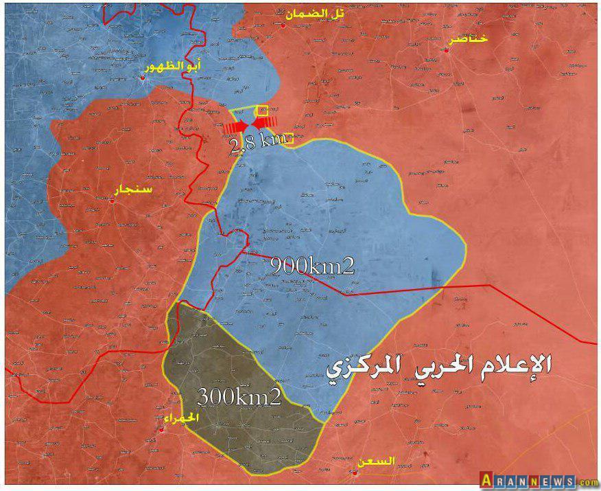 گروه تروریستی جبهه النصره و تعدادی از تروریست های داعشی با این پیشروی در منطقه ای به مساحت هزار و 200 کیلومتر مربع در این سه استان محاصره شدند.