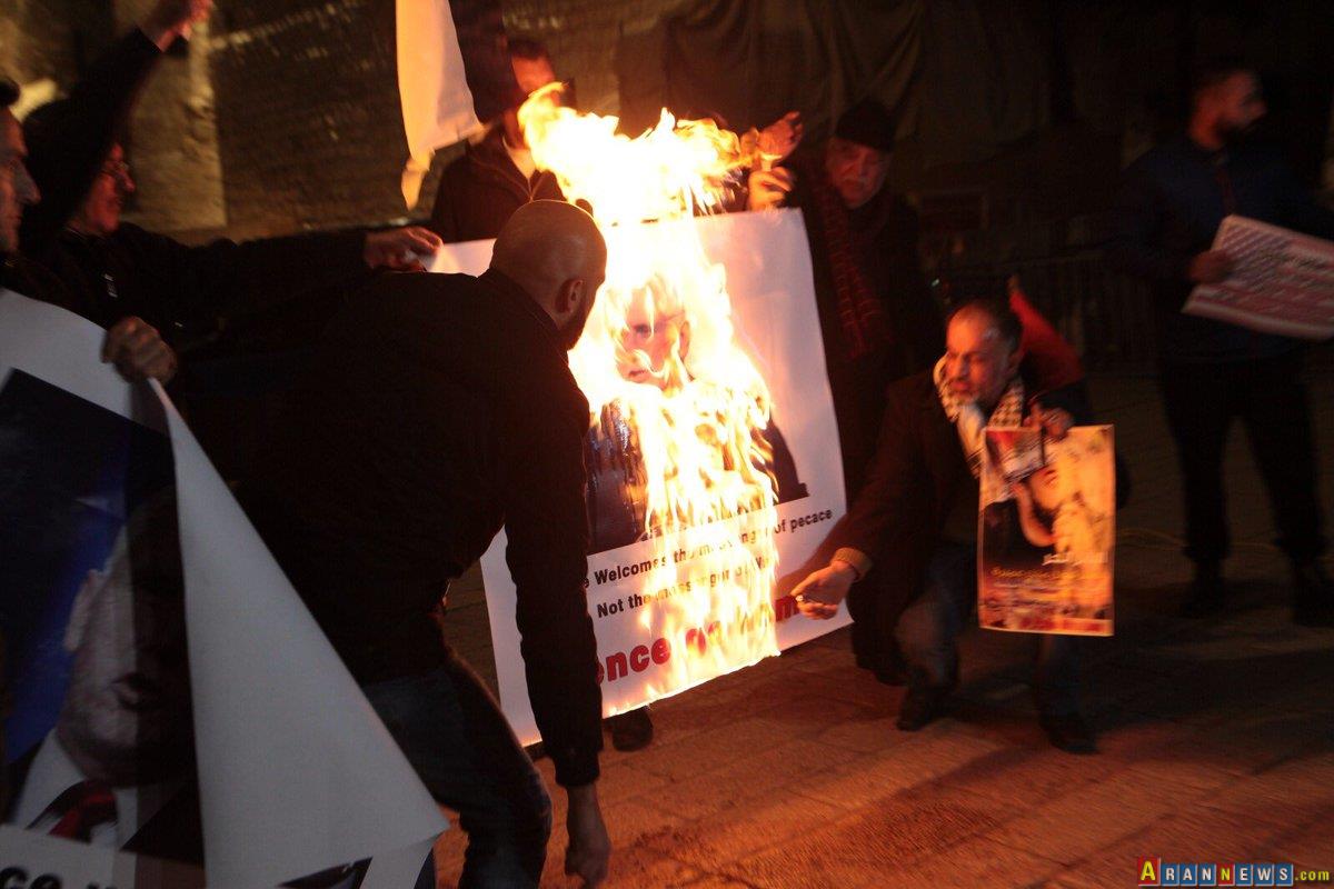 تعداد زیادی از فلسطینیان در «بیت لحم» کرانه باختری با به آتش کشیدن تصاویر ترامپ و مایک پنس تظاهرات به پا کردند.