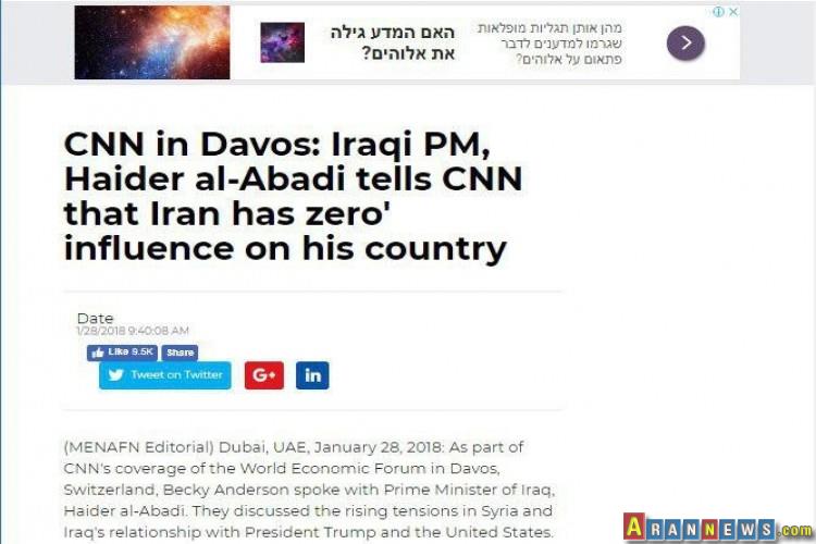 در خبر درج شده در رسانه های عراقی، ذکری از ایران به میان نیامده است اما در تصویر برشی از خبر سی ان ان که این رسانه ها بازتاب داده اند، (تصویر پیوست)، تیتر مصاحبه در مورد ایران و تاکید العبادی بر عدم نفوذ ایران در عراق است.