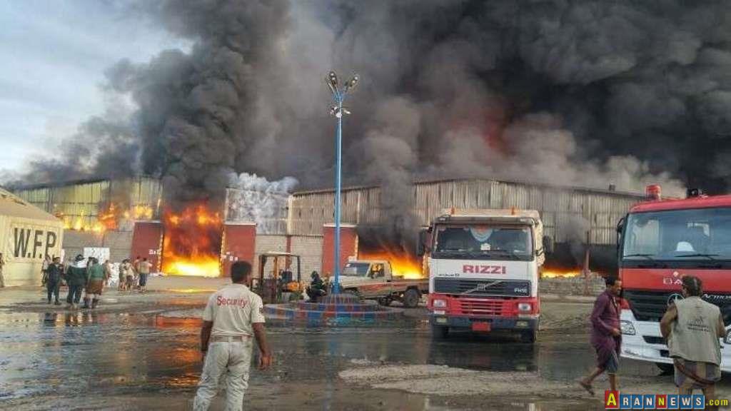 مقادیر زیادی از کمک های غذایی و امدادی به مردم جنگ زده یمن در آتش سوزی بندر «الحدیده« واقع در غرب این کشور، از بین رفت.